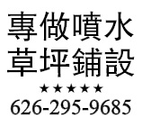 專做噴水 草坪鋪設 | 626-295-9685