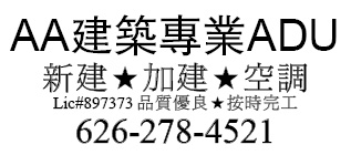 AA建築專業ADU | 新建加建空調 Lic#897373 品質優良按時完工626-278-4521